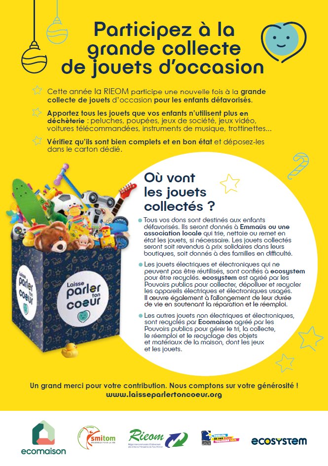 Opération « Laisse parler ton coeur » du 1er au 30 novembre 2025 ! Collecte de jouets « d’occasion » en déchèteries de Drusenheim, Gambsheim, Roeschwoog et Sessenheim !